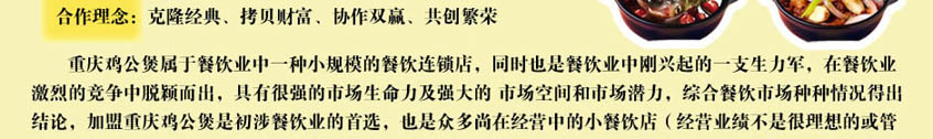 中的"重慶雞公煲"都能看到一派欣欣向榮的景象,在眾多的餐飲業(yè)中獨樹一幟,具有很強的市場感召力。